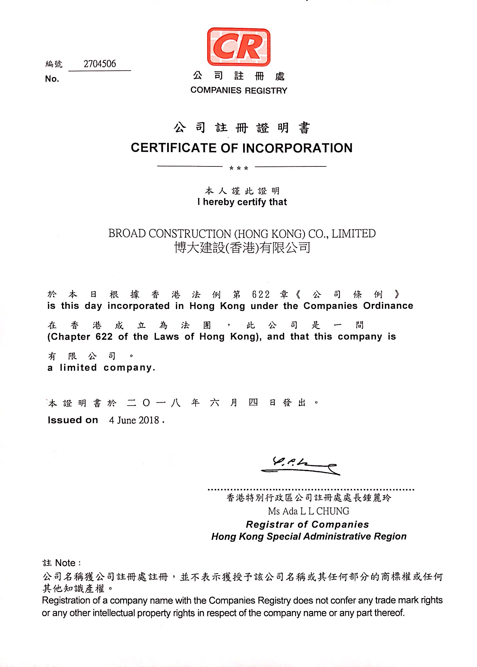 為進(jìn)一步拓展港澳臺、東南亞以及國際市場,全力支持和參與國家“一帶一路”戰(zhàn)略和粵港澳大灣區(qū)建設(shè),博大建設(shè)集團(tuán)深入“一帶一路”沿線國家和地區(qū)進(jìn)行考察調(diào)研,精心組建具有國際視野的專業(yè)人才團(tuán)隊,經(jīng)過精心籌備,于2018年6月4日注冊成立了博大建設(shè)(香港)有限公司。