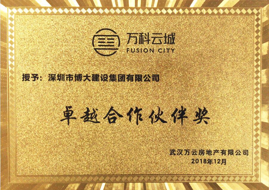 裝飾與幕墻平分秋色,博大建設(shè)集團(tuán)憑借過(guò)硬的工程質(zhì)量、嚴(yán)格的工期保障、全心全意的服務(wù),與招商蛇口建立了長(zhǎng)期合作關(guān)系,裝飾類(lèi)和幕墻類(lèi)同時(shí)榮獲招商蛇口“2018年度優(yōu)秀新供應(yīng)商獎(jiǎng)”。