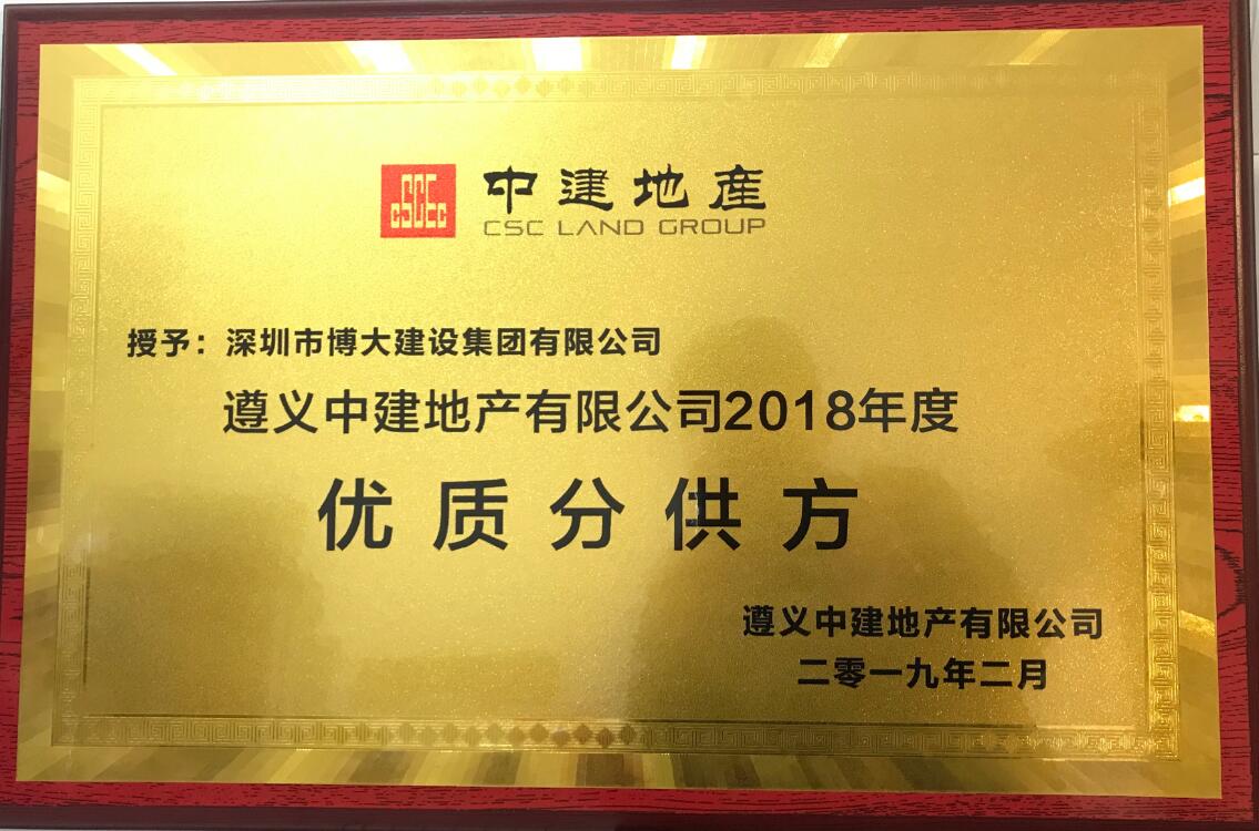 博大建設(shè)集團(tuán)秉承“讓顧客有幸福感”的企業(yè)魂,與遵義中建地產(chǎn)建立起良好的戰(zhàn)略合作關(guān)系,保安全、保質(zhì)量、保工期、保服務(wù)、守合同,以?xún)?yōu)秀成果獲得客戶(hù)的高度認(rèn)可,榮獲遵義中建地產(chǎn)2018年度“優(yōu)質(zhì)分供方”。